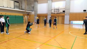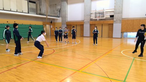 バスケットボール部とダンス部の顧問は、2人とも小中高とバレー部出身!青春時代にバレーで汗と涙を流した先生方ならではの練習メニューを体験してもらいました。