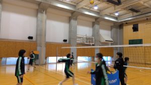 後半には2チームに分かれてゲームをしました。さすが、バレーボールをしたい!と集まったメンバーです。ボールを落とさない!と滑り込んだり、点数を取る!と積極的にネット際で攻撃したり、いいプレーが続出でした。点数が入った時はチームメイト同士でハイタッチ!大いに盛り上がりました。