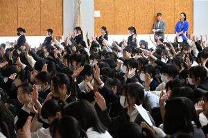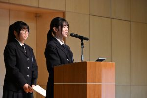 生徒総会とは、中高生徒会と各委員会の委員長が今年度の活動方針や活動内容について全校生徒に伝える大切な機会です。生徒も真剣に話を聞き、多数決によって今年度の活動方針は無事に可決されました。
