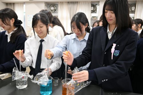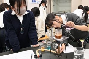 テキスタイルや染物に興味がある生徒も多い美術デザインコース。小さな布を染める実験ではありましたが、楽しく学ぶことができました。