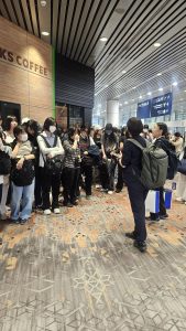 初日は7:30に成田空港に集合し、要所要所で自分達で声を掛け合いながら点呼しつつ、順調に搭乗。離陸・着陸の際には「ひぇー」「ぎゃー」「おー」の声や拍手が起こっていました。マレーシア航空のCAの皆さんはユーモアに富み親切で、既に良い旅になりそうな予感がありました。