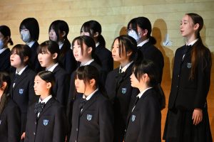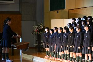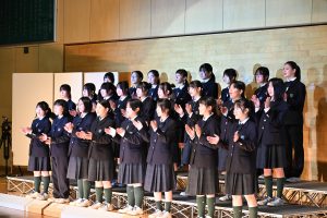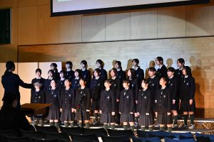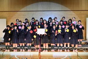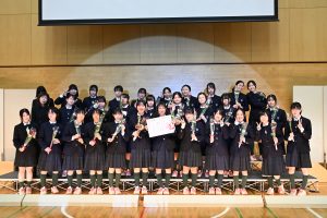 優勝した3年b組は、音取りが大変なアカペラに挑戦!圧倒の合唱でした。準優勝の3年c組は難曲「虹」を美しいハーモニーで会場を魅了しました。3位は中2と中1のダブル受賞となりました。2年a組は3部パートのバランスがよい合唱でした。1年c組は明るく元気な合唱を披露してくれました。