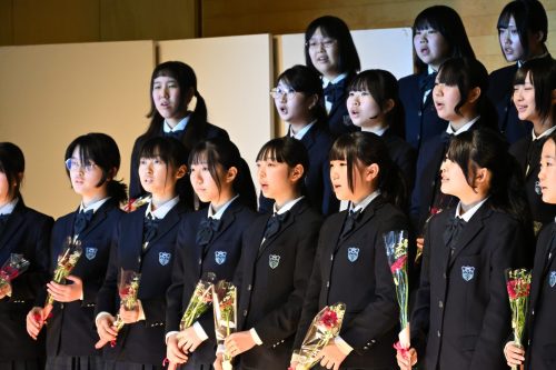 優勝した3年b組は、音取りが大変なアカペラに挑戦!圧倒の合唱でした。準優勝の3年c組は難曲「虹」を美しいハーモニーで会場を魅了しました。3位は中2と中1のダブル受賞となりました。2年a組は3部パートのバランスがよい合唱でした。1年c組は明るく元気な合唱を披露してくれました。
