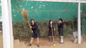 入試前の落ち葉掃き!