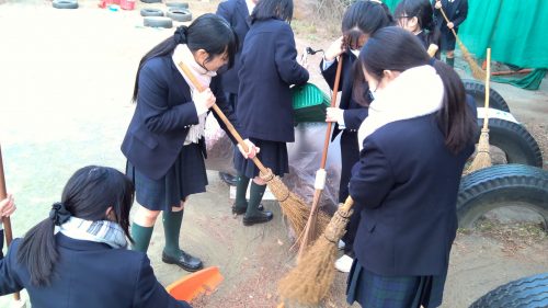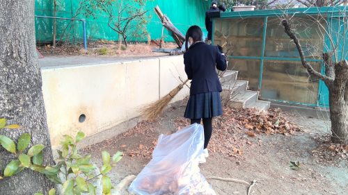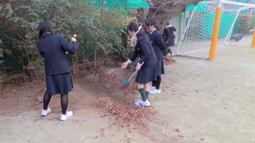 寒い中での大変な作業でしたが、受験生や小学生のことを思いやり、他学年と交流しながら楽しく清掃活動ができる生徒たち。さすがです!