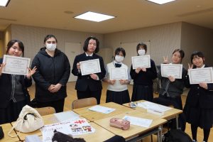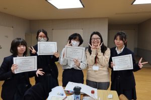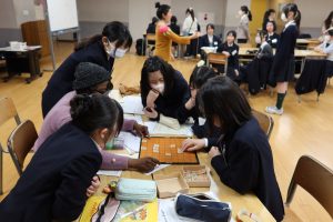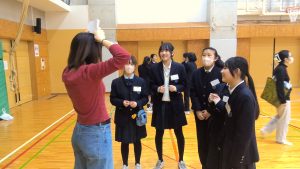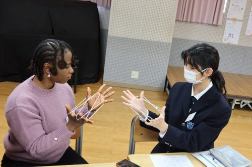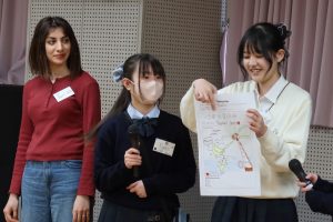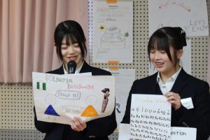 体育館でのアクティビティでは、体を動かしながら笑顔あふれる交流が広がりました。ホールでの活動では、シニアバディの国の文化や言語を学ぶだけでなく、日本文化を英語で紹介する時間もあります。けん玉や折り紙、将棋、福笑い、あやとり、はないちもんめなど、日本ならではの遊びを一生懸命英語で伝え、楽しんでもらう姿がとても印象的でした。最終日のプレゼンテーションでは、クイズやあいさつ紹介など、各グループがアイデアを凝らした発表を行い、会場は大いに盛り上がりました。