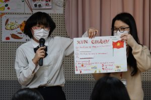 今年はアルゼンチン、イラン、ベトナム、ペルー、フランス、ナイジェリア、ジョージアからの留学生をシニアバディとして迎えました。シニアバディは「先生」ではなく「年上の友達」。生徒たちはリラックスした雰囲気の中で、自然と英語での会話にチャレンジしていきます。