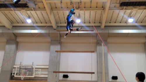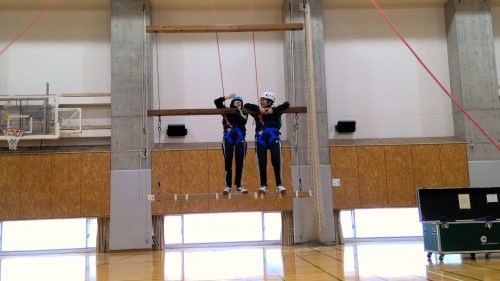ジャイアントラダーにチャレンジした後も、「楽しかった!」「地上最高!床最高!(ゆらゆらゆれる不安定さからの解放!)」「ペアの子がどんどん行くからついていくしかなくて、とにかく頑張った」「下から見ているのとやってみたのとでは全く違った!」と終始興奮気味の生徒たち。